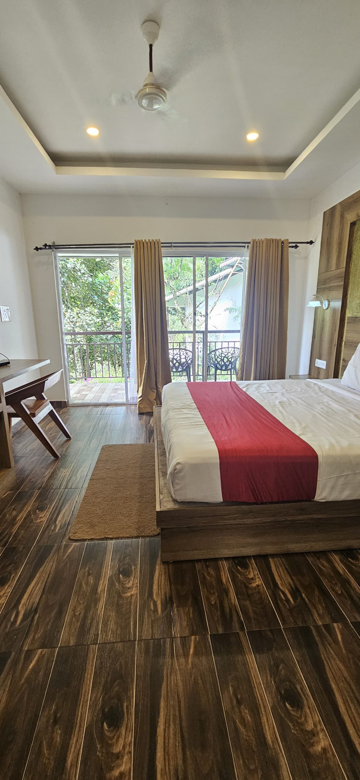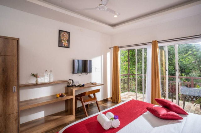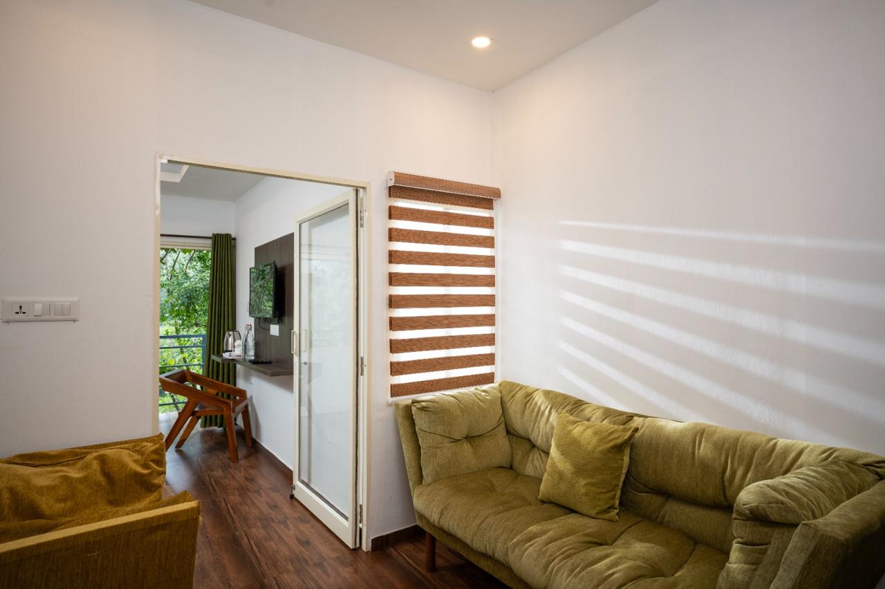 One Deluxe cottage include 1 living room, 1 bedroom, attached washroom and a private balcony. Additional people 800 per person.